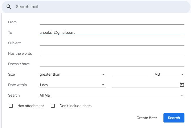 [email protected]) உள்ளிடவும். - கீழே உள்ள Create filter என்பதை அழுத்தவும்.