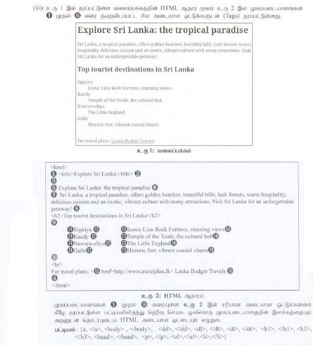 முகப்படையாளங்கள் ❶ முதல் ⓰ வரையுள்ள உரு 2 இன் சரியான அடையாள ஒட்டுக்களைக் கீழே தரப்பட்டுள்ள பட்டியலிலிருந்து தெரிவு செய்க. ஒவ்வொரு முகப்படையாளத்தின் இலக்கத்தையும் அதனுடன் தொடர்புடைய HTML அடையாள ஒட்டையும் எழுதுக.