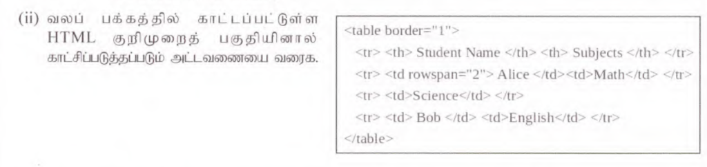 <tr> <th> Student Name </th> <th> Subjects </th> </tr>