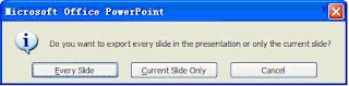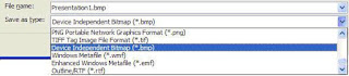 முதலில் பவபொயின்டைத் திற்ந்து ஒரு ப்ரசண்டேசனை உருவாக்கிக் கொள்ளுங்கள். பின்னர் அதனைக் சேமிப்பதற்கு பைல் மெனுவில் Save As தெரிவு செய்யுங்கள். அப்போது தோன்றும் Save As டயலொக் பொக்ஸில் அதனை சேமிப்பதற்கான ஒரு போல்டரைத் தெரிவு செய்து விட்டு Save as type எனுமிடத்தில் Device Independent Bitmap (*.bmp) என்பதைத் தெரிவு செய்து Save பட்டனில் க்ளிக் செய்யுங்கள். அப்போது தோன்றும் சிறிய மெஸ்ஸேஜ் பொக்ஸில் Every Slide அல்லது Current Slide Only என்பதைத் உங்கள் விருப்பப்படி தெரிவு செய்து ஓகே செய்யுங்கள். அப்போது ஒவ்வொரு ஸ்லைடும் பிட்மெப் (Bitmap) படங்களாக அந்த போல்டரினுள் சேமிக்கப்படும்.