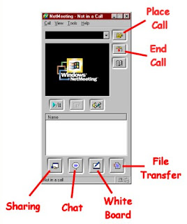 White Board எனப்படும் எம்.எஸ். பெயின்ட் போன்ற ஒரு எப்லிகேசனில் நெட்வர்க்கில் இணைந்துள்ள பல பேர் சேர்ந்து ஒரே படத்தை ஒரே நேரத்தில் வரைய முடியும். தகவல்களைப் பரிமாற முடியும்.நெட் மீட்டிங் தரும் வசதிகளைப் பயன் படுத்த் கணினி இணையத்திலோ அல்லது ஒரு உள்ளக வலையமைப்பிலோ இணைந்திருத்த்ல் அவசியம். இரண்டு கணினிகளை இணைப்பதன் மூலமும் இந்த வசதிகளைப் பரீட்சித்துப் பார்க்கலாம்.