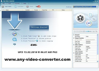 வீடியோ பைல் போமட்டுகளை மாற்றுவது மட்டுமன்றி YouTube போன்ற இணைய வீடியோ க்ளிப்புகளையும் டவுன்லோட் செய்து தரும் வசதியையும் இது கொண்டுள்ளது. இலகுவான இடைமுகப்பைக் கொண்டுள்ள எனி வீடியோ கன்வேட்டர் மென்பொருளை www.any-video-converter.com எனும் இணைய தளத்திலிருந்து இலவச்மாக தறவிறக்கம் செய்யலாம். இதன் பைல் அளவு 13 MB. எனி வீடியோ கன்வேட்டர் மென்பொருள் அதன் பெயருக்கேற்ற வாறு சிறப்பாகவே செயற்படுகிறது. -அனூப்
