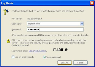 இணைய உலாவி மூலம் FTP சேர்வரை அணுகும்போது முகவரிப் பட்டையில் ftp:// என்பது சேர்த்துக் கொள்ளப்படும். உதாரணமாக, ftp://ftp.schoolnet.lk/ என வழங்கினால் அந்த FTP சேர்வரை அடையாளமில்லாத முறையில் (anonymous) அணுகும். எனினும் அந்த FTP சேர்வர் பயனர் பெயர் மற்றும் கடவு சொல் வினவுமாயின் ftp://username:[email protected] எனும் ஒழுங்கில் வழங்க வேண்டும். எனினும் இவ்வாறு வழங்கும் போது கடவு சொல் பிரவுஸரினால் கணினியில் சேமிக்கப்படும் அத்னால் பாஸ்வர்டை வழங்காது பயனர் பெயரை மட்டும் பின்வருமாறு வழங்கலாம். ftp://[email protected] இவ்வாறு வழங்கும் போது பாஸ்வர்டை பிரவுஸர் பின்னர் வினவும். எனினும் ப்ரவுஸரில் பாஸ்வர்ட் தங்காது. .