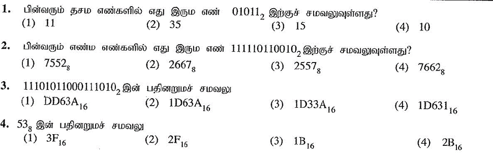 (4) 111011 | 6. எண் 1010101, இன் தசமச் சமவலு ………….. (1) 21 (2) 58 (3) 81